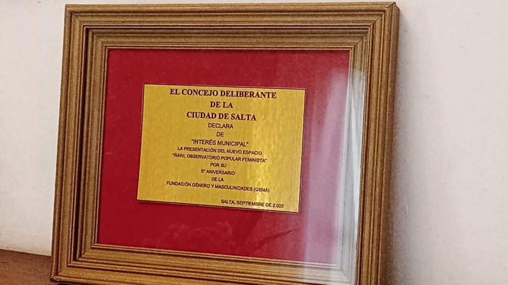 El 18 de Septiembre el Concejo Deliberante de la Cuidad de Salta , por medio de la concejal Sra. Malvina Gareca, declaró de “Interes Municipal“, la presentacion del nuevo espacio denominado “ÑAWI, Observatorio Popular Feminista” en el marco del 6° aniversario de la fundacion GEMA , a realizarse en el Centro Cultural HolverMartínez Borelli-U.N.Sa.